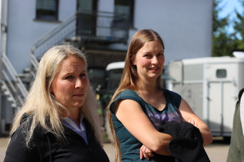 Den Abschluss der Fahrt bildete der Steinfelderhof der Familie Martin in Eckenroth. Franz, Hildegard und Ronja Martin die alle begeisterte Pferdemenschen sind, können in diesem Jahr besondere Zuchterfolge feiern: Ihre Stute Fine Lady M von Fürstenlook aus der Charmeur`s Cherry ist für das Bundeschampionat der fünłährigen Dressurpferde qualifiziert und wir dort teilnehmen. Und der dreijährige Hengst Elocim v. Escamillo aus der First Love M v. Fürstenball, jetzt im Besitz des Gestütes Birkhof, ist überragender süddeutscher Champion geworden. Franz Martin hat seine Zucht mit einer Araberstute begonnen und momentan ist die Dream Lady One M von Dream of Glory – Amor die StammmuƩer der erfolgreichsten Pferde. Sehr interessante und qualitätvolle Fohlen der Hengste Segantini, Irondale, Glamourdale und Vitalis kamen zur Vorführung. Hier wird also auch hochklassige Genetik auf der Hengstseite eingesetzt. Zu guter Letzt präsentierte Ronja Martin mit berechtigtem Stolz die Stute First Love M, die sie als Amateurin zwei Mal mit beachtlichem Erfolg beim Bundeschampionat geritten hat, und die ja auch Mutter des Elocim ist. Leider ist First Love seit einiger Zeit nicht mehr tragend geworden. Geselliges Beisammensein bei Martins auf dem Hof mit interessanten Gesprächen bei Kaffee und Kuchen bildete den Abschluss der Fahrt. Großer Dank gebührt den vier Betrieben für ihre Gastfreundschaft und das tolle Herausbringen und Vorführen der Pferde.