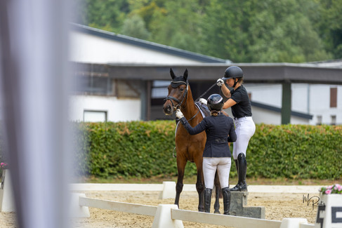 Roxana Noack (geb. Mohr) übernahm in diesem Jahr die Aufgabe der Fremdreiterin. Sie ist selbst hoch erfolgreich in Jungpferdeprüfungen bis hin zu Dressurprüfungen der Klasse S unterwegs. Ihr gelang es, sich hervorragend auf die Pferde einzustellen. Großes, uneingeschränktes Lob war ihr sicher.
